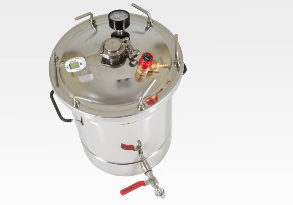 1,5 дюймовый кламп позволяет превратить автоклав в самогонный аппарат.